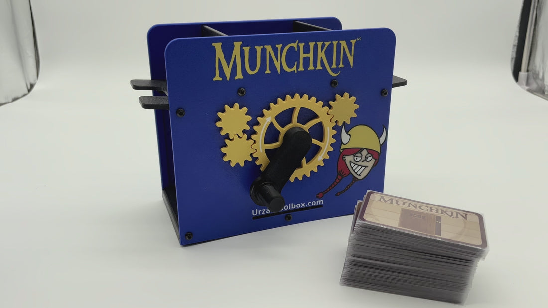 Urza's Toolbox custom 3D-prints, hand-assembles, and manually tests each shuffler. Due to the custom nature of these items, movement, color, finish, and clarity may vary between items and from product photos. We use multiple colors of filament to print and create the lettering on the front and rear, Spyke and Flower heads, as well as the logos on the gears. All "Munchkin" sized shufflers are tested and tuned for single-sleeved cards. You can manually adjust your shuffler to work with sleeves of different thickness and single/double-sleeved cards. As with many hand-built items, your shuffler may require occasional adjustments to ensure proper operation.